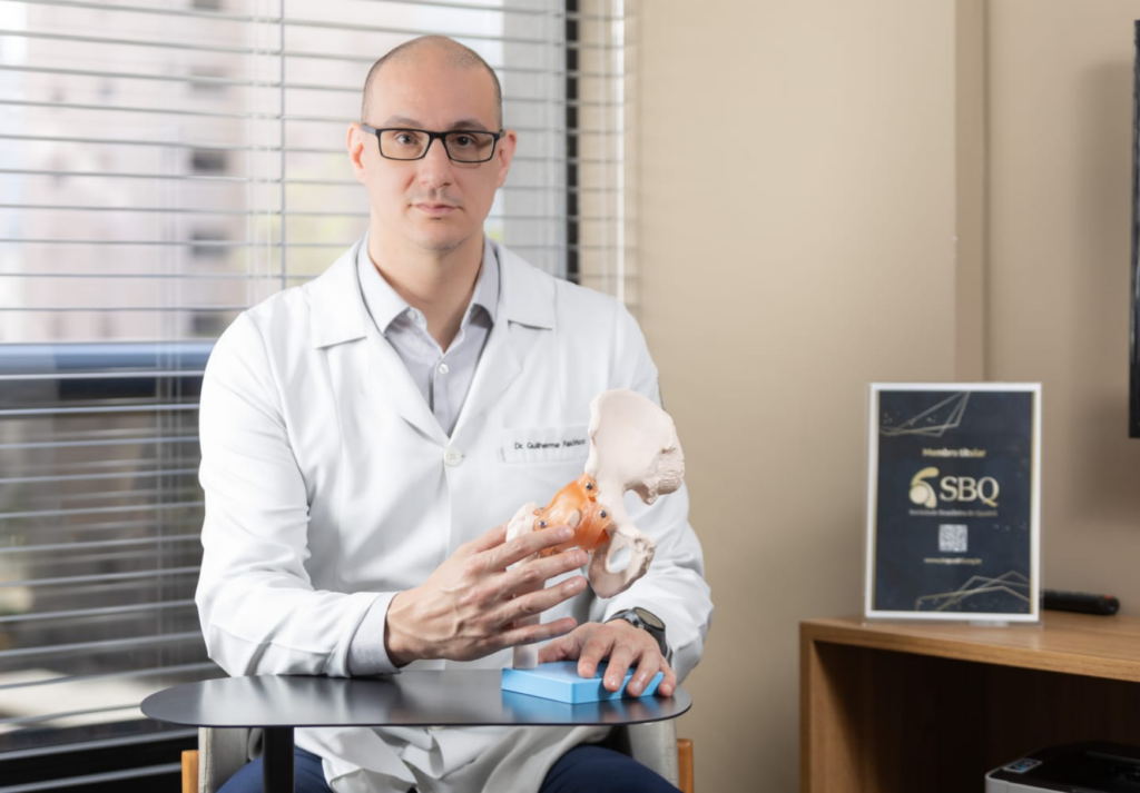 Dr. Guilherme Falótico é ortopedista especialista em cirurgia do quadril, CRM 128925. Possui formação pela Escola Paulista de Medicina da UNIFESP, onde atua como professor adjunto. É mestre e doutor em Ciências, realizou fellowship no Rothman Institute, nos Estados Unidos, com foco em via anterior do quadril e infecções em artroplastias. É certificado em cirurgia robótica com o robô Mako e membro da SBOT e da SBQ. Atua como referência em ortopedia, ciência e inovação.